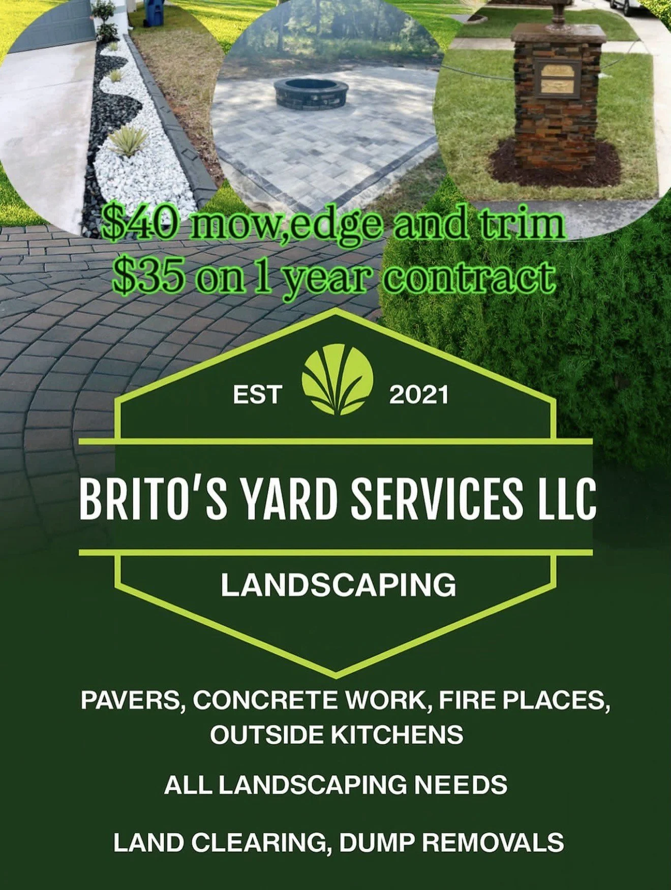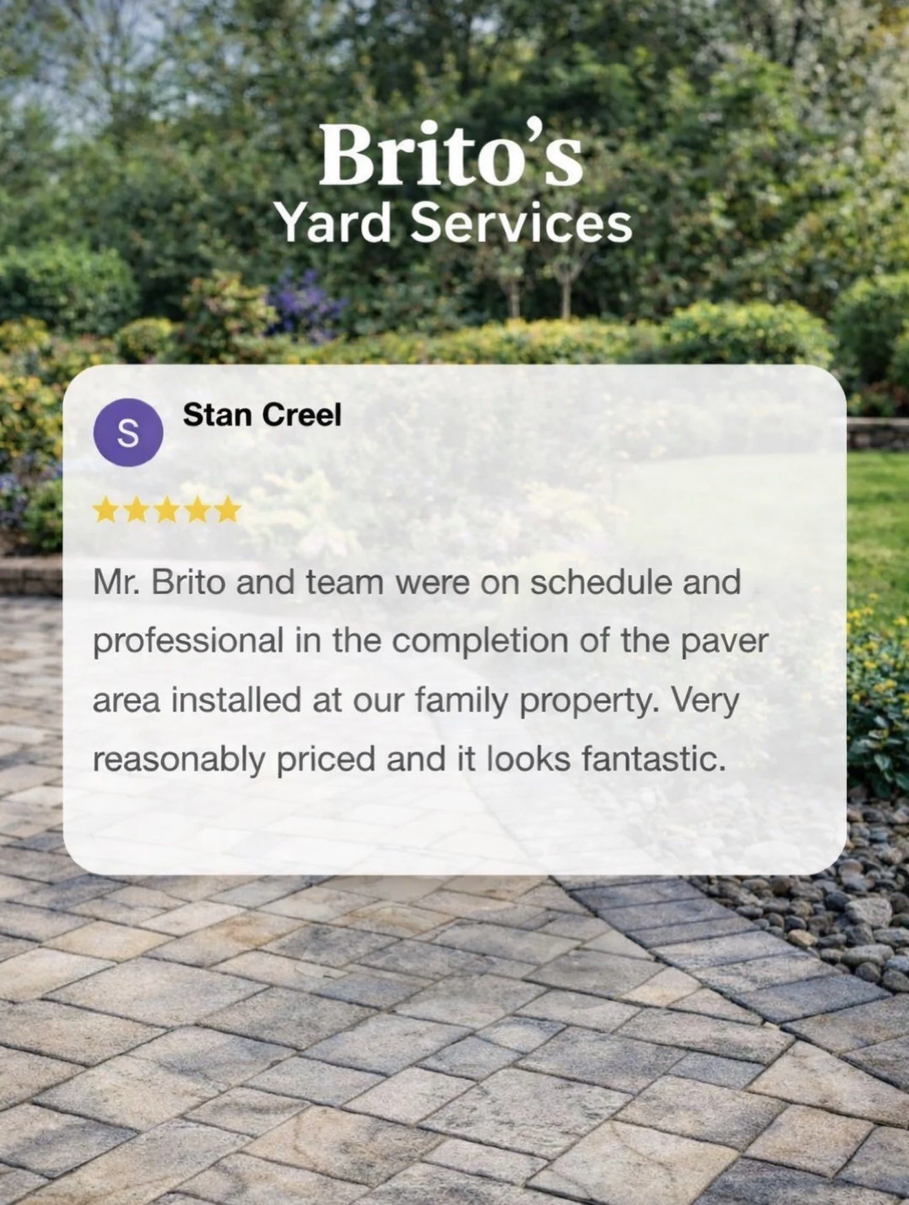 Welcome to Brito’s Yard Services LLC, we take pride in transforming outdoor spaces with expert landscaping, hardscaping, concrete, and paver installations. With a focus on quality workmanship and customer satisfaction, we deliver durable and visually stunning results for every project.